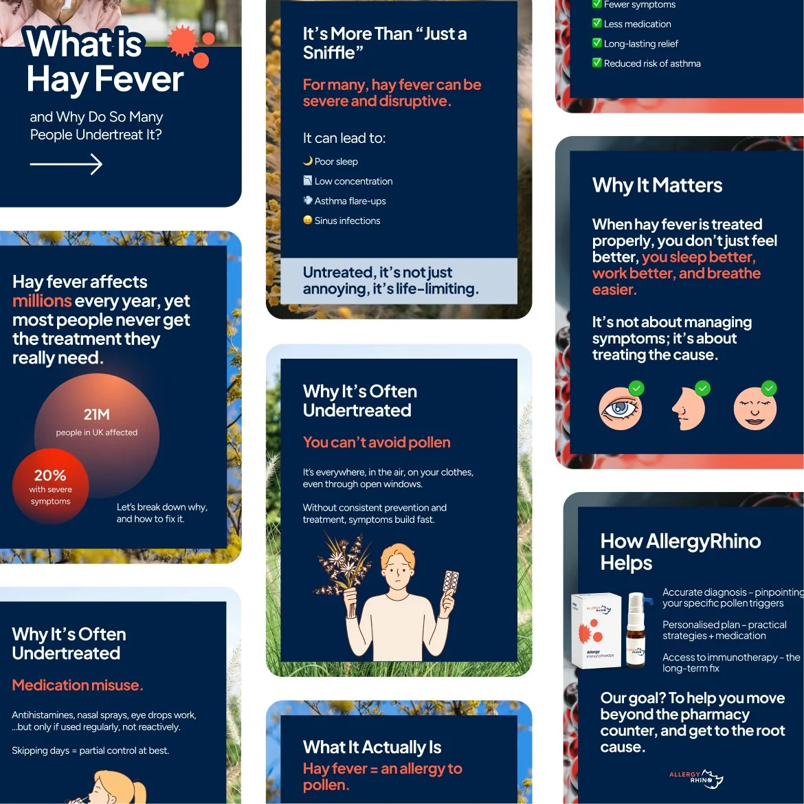 The AllergyRhino brand was developed end-to-end, including logo, visual identity, tone of voice, and imagery.
