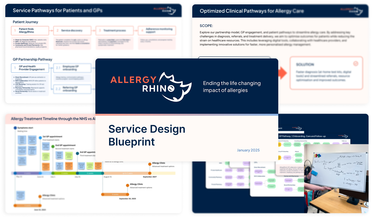 AllergyRhino was conceived as a modern allergy care company operating within a regulated healthcare environment. While strong clinical expertise and manufacturing partnerships were already in place, the business lacked a defined product model, service structure, and delivery system. I was engaged to translate the clinical vision into a functioning company by designing the services, digital products, and operational workflows required to operate safely, credibly, and at scale.