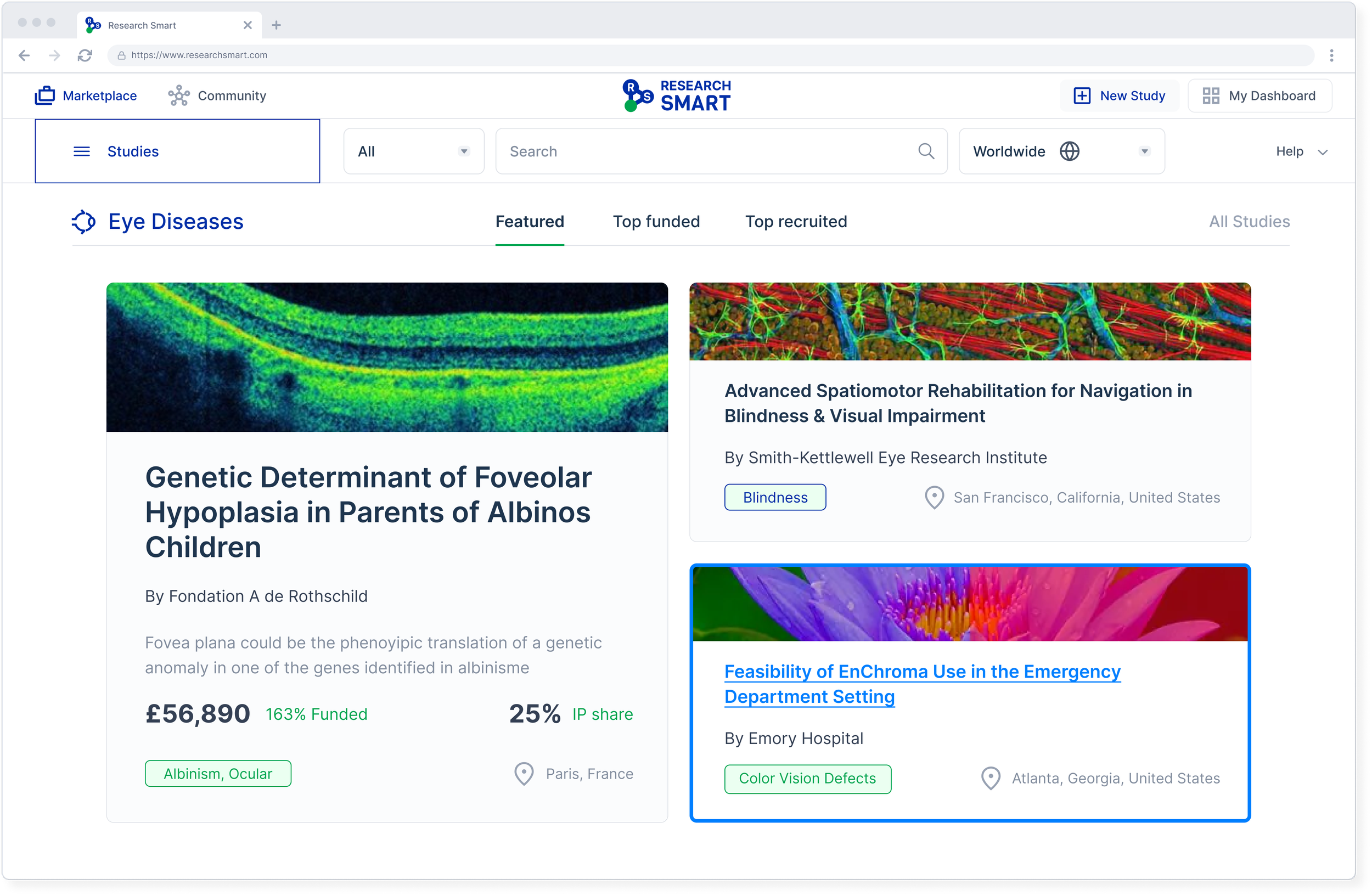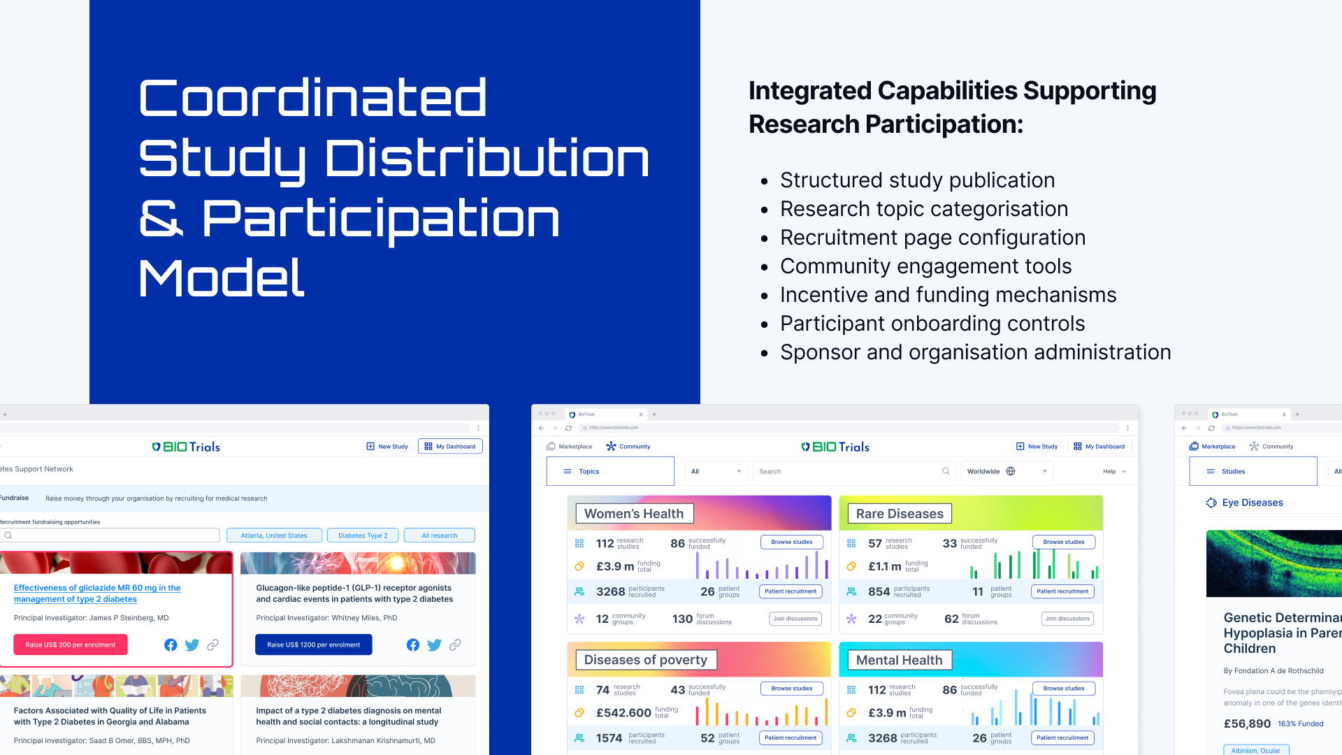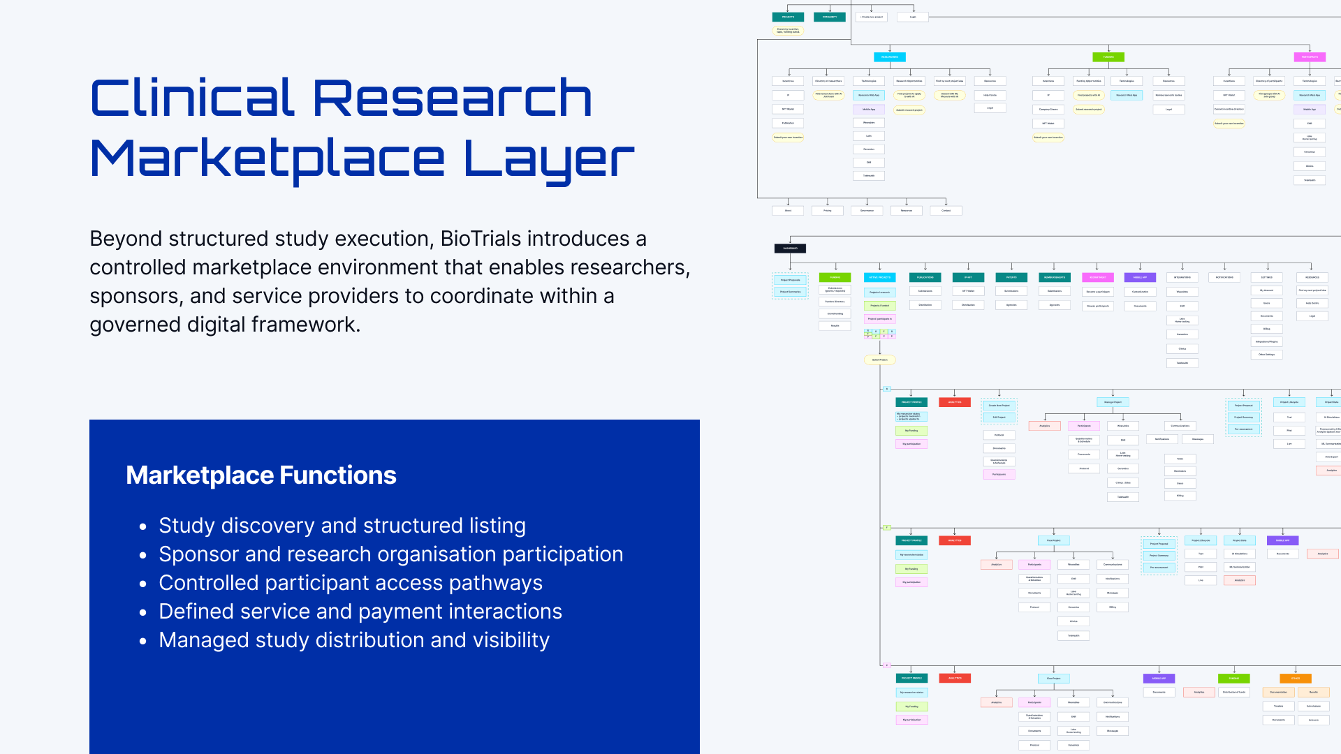 The marketplace connects researchers, sponsors, and participants in one shared environment. It enables study discovery, recruitment, and collaboration in a structured way.
