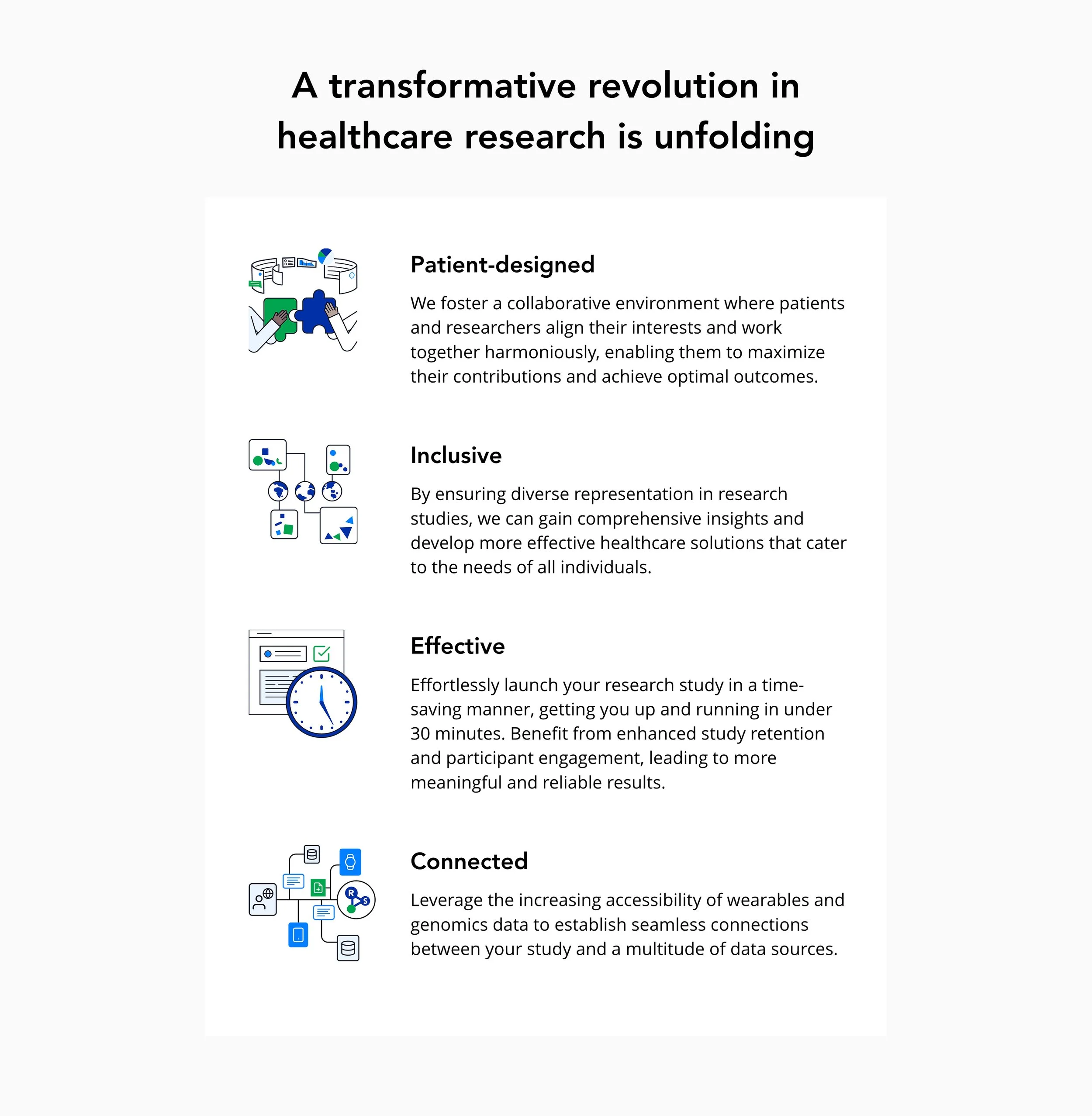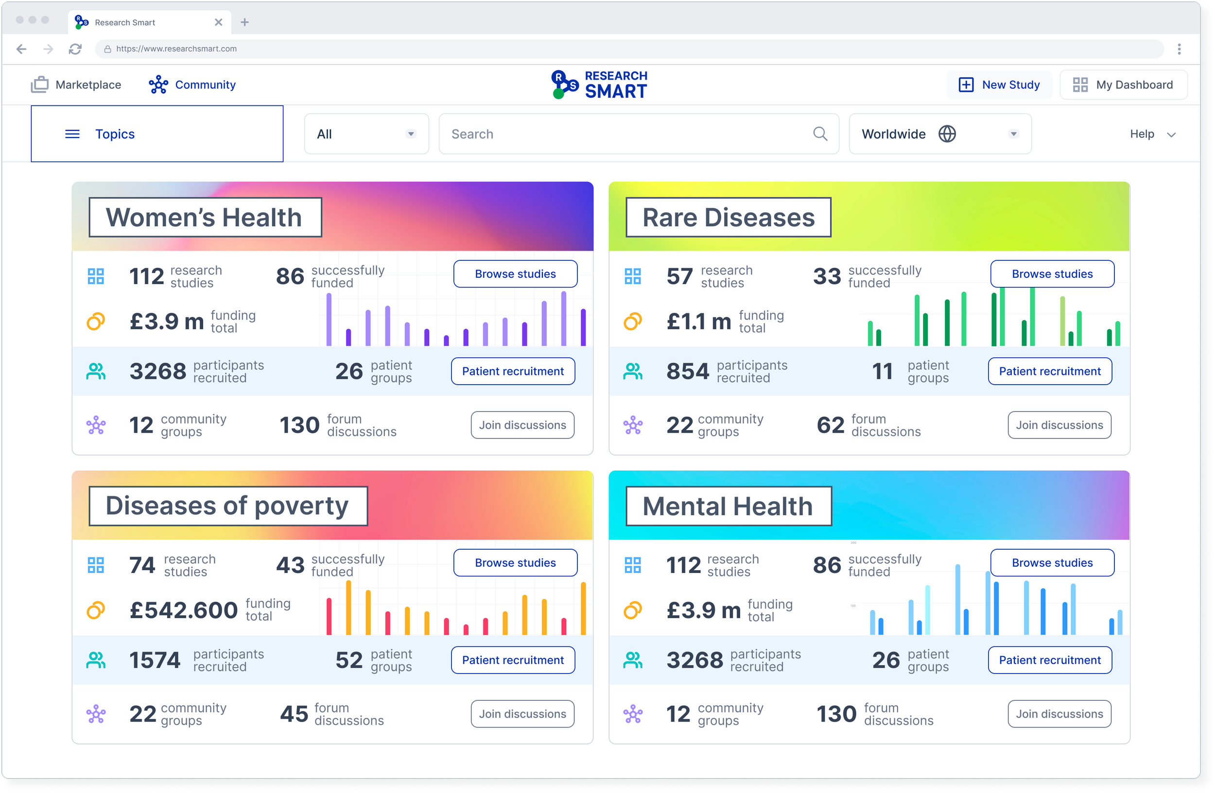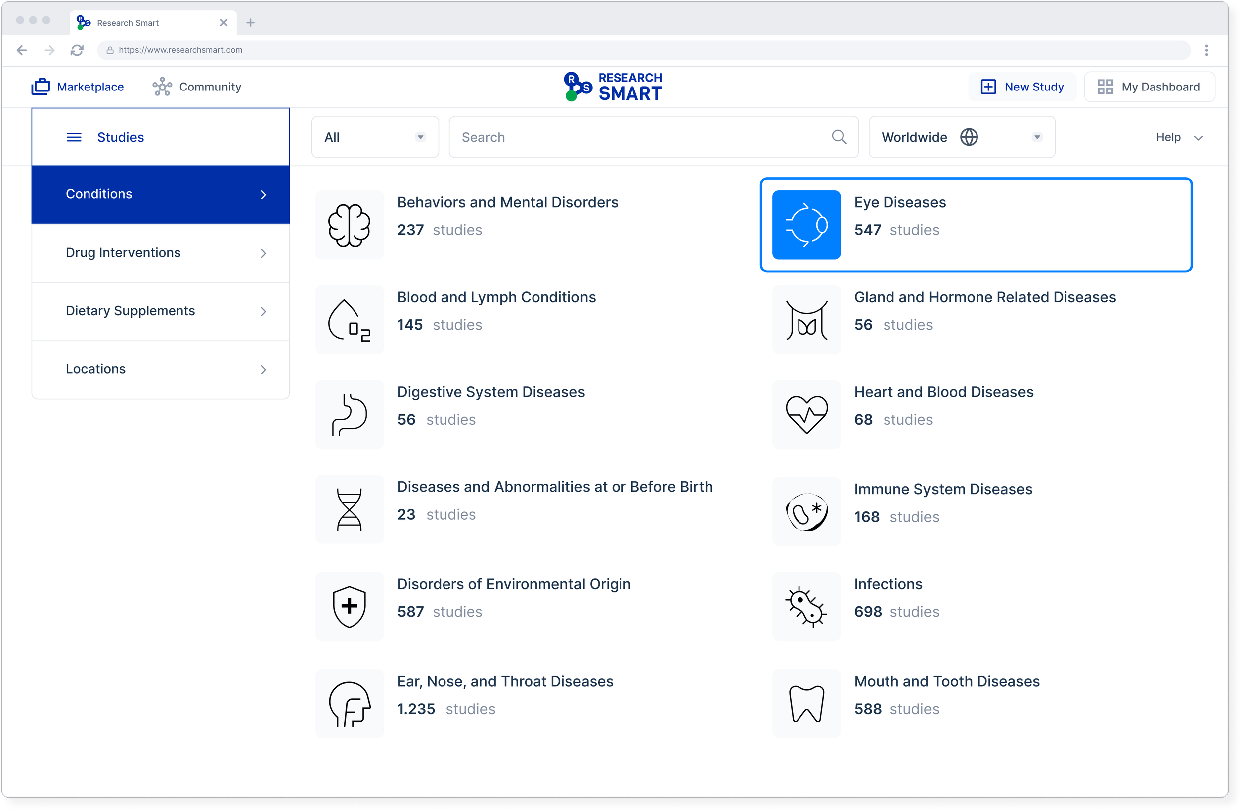 The marketplace connects researchers, sponsors, and participants in one shared environment. It enables study discovery, recruitment, and collaboration in a structured way.