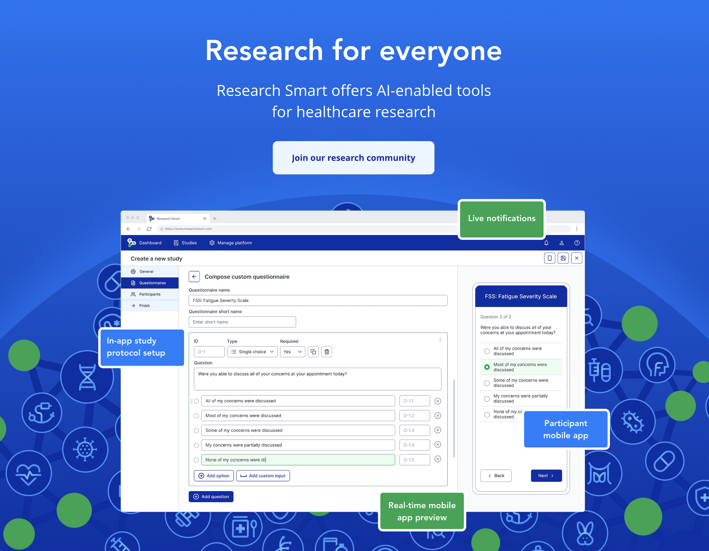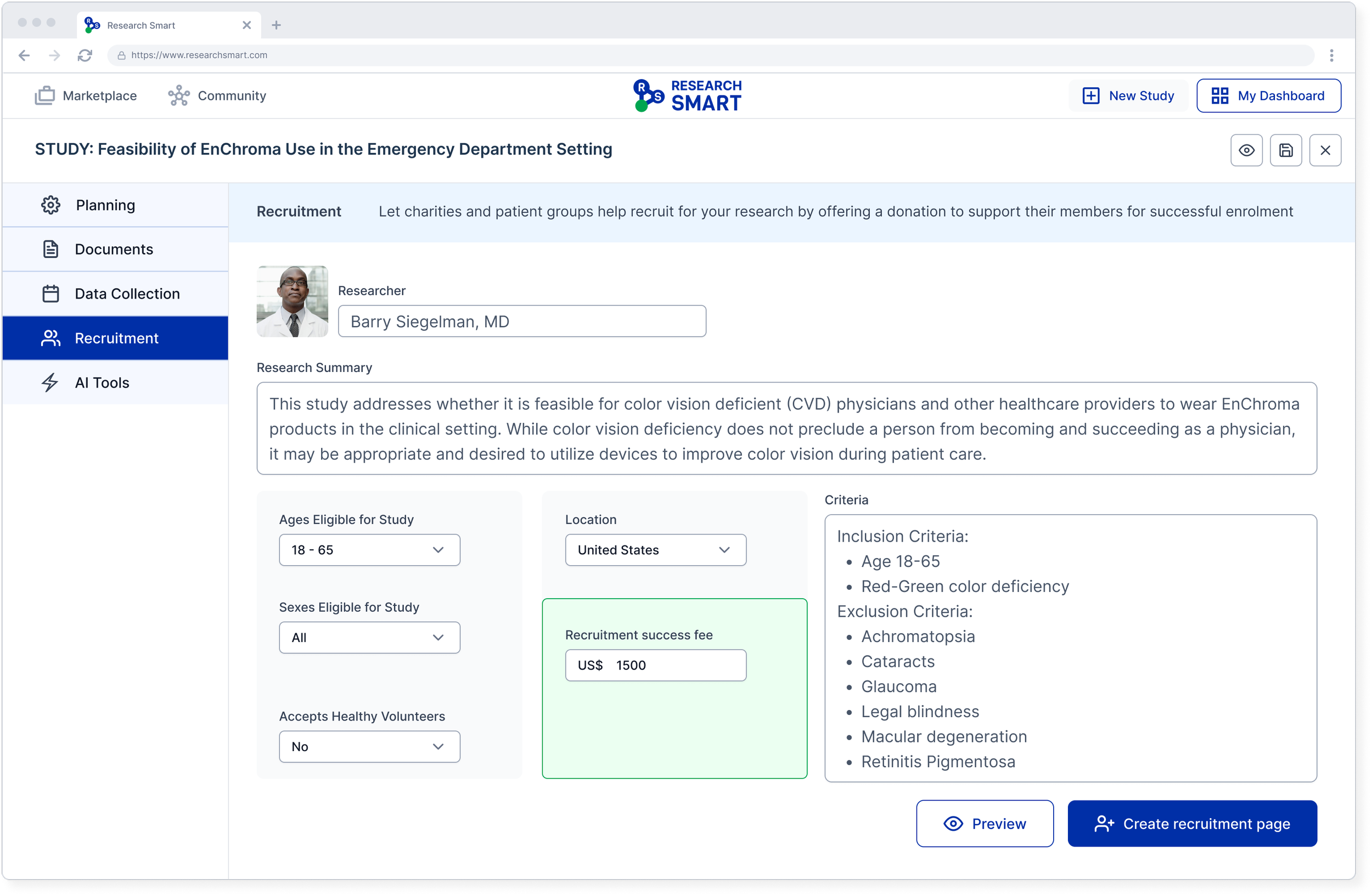 Beyond core software functionality, ResearchSmart integrates research tools, recruitment pathways, funding models, and governance layers into a cohesive digital framework. These features reflect the platform’s role as a coordinated research infrastructure.