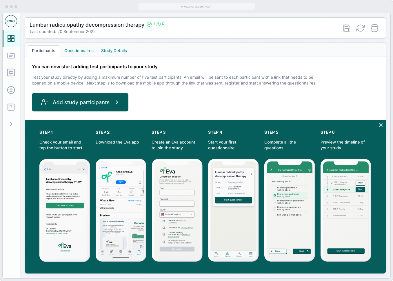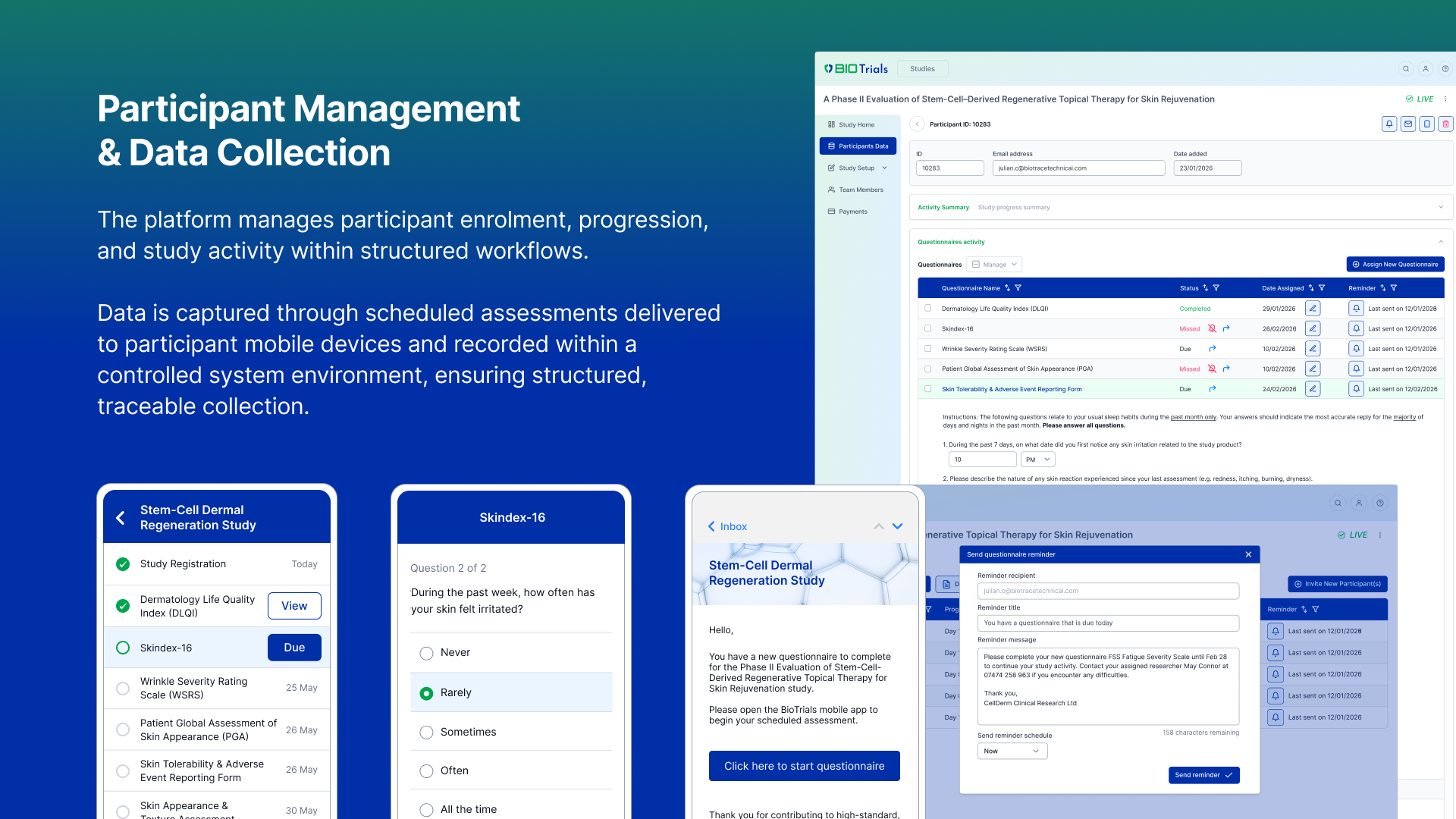 • Structured participant progression and consent controls