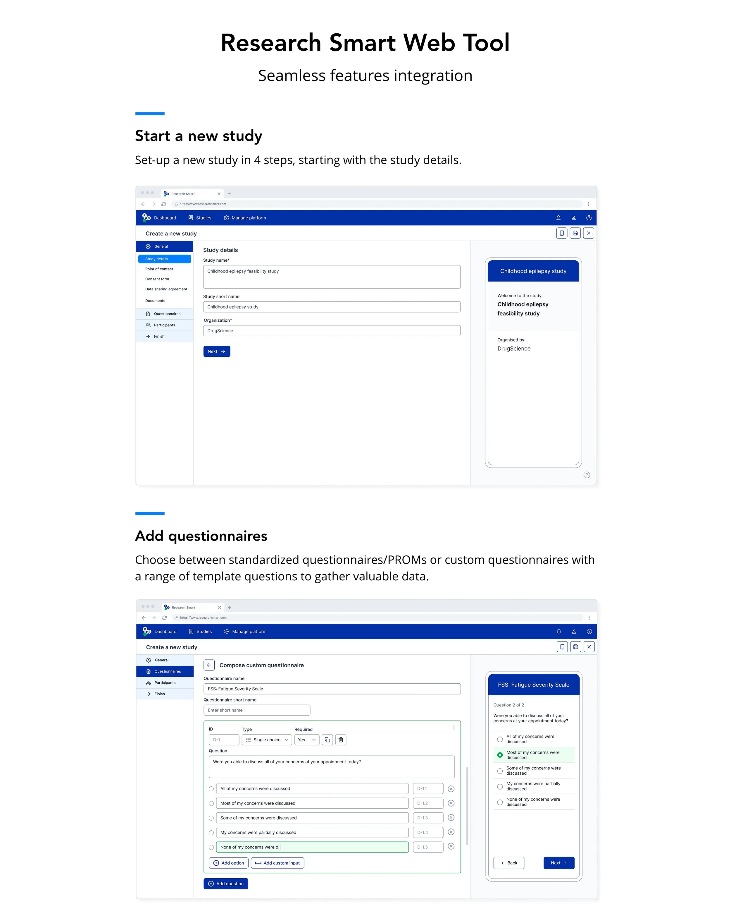 • Configurable study workflows adaptable to different research contexts