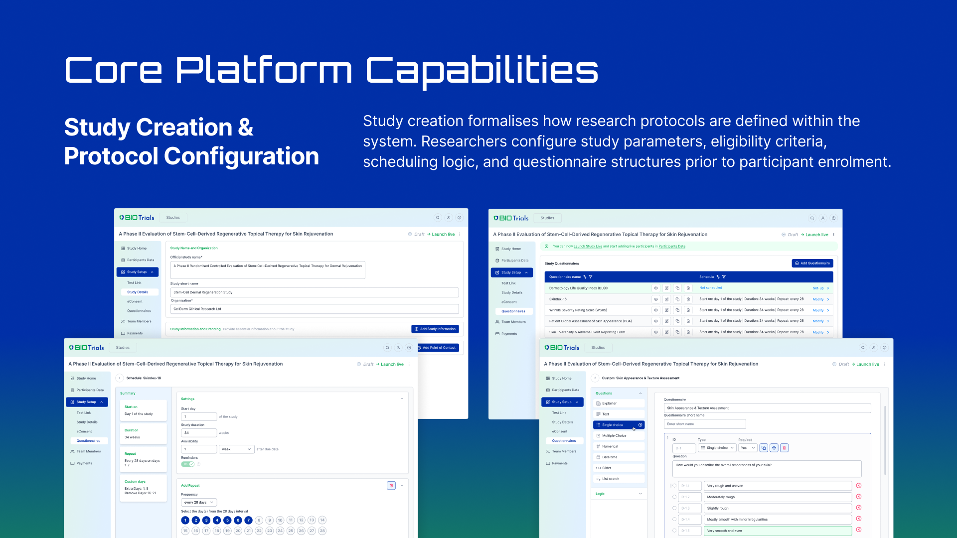 The system is now positioned as a white-label infrastructure solution, continuously evolving to support compliant clinical trial execution across academic and commercial environments.